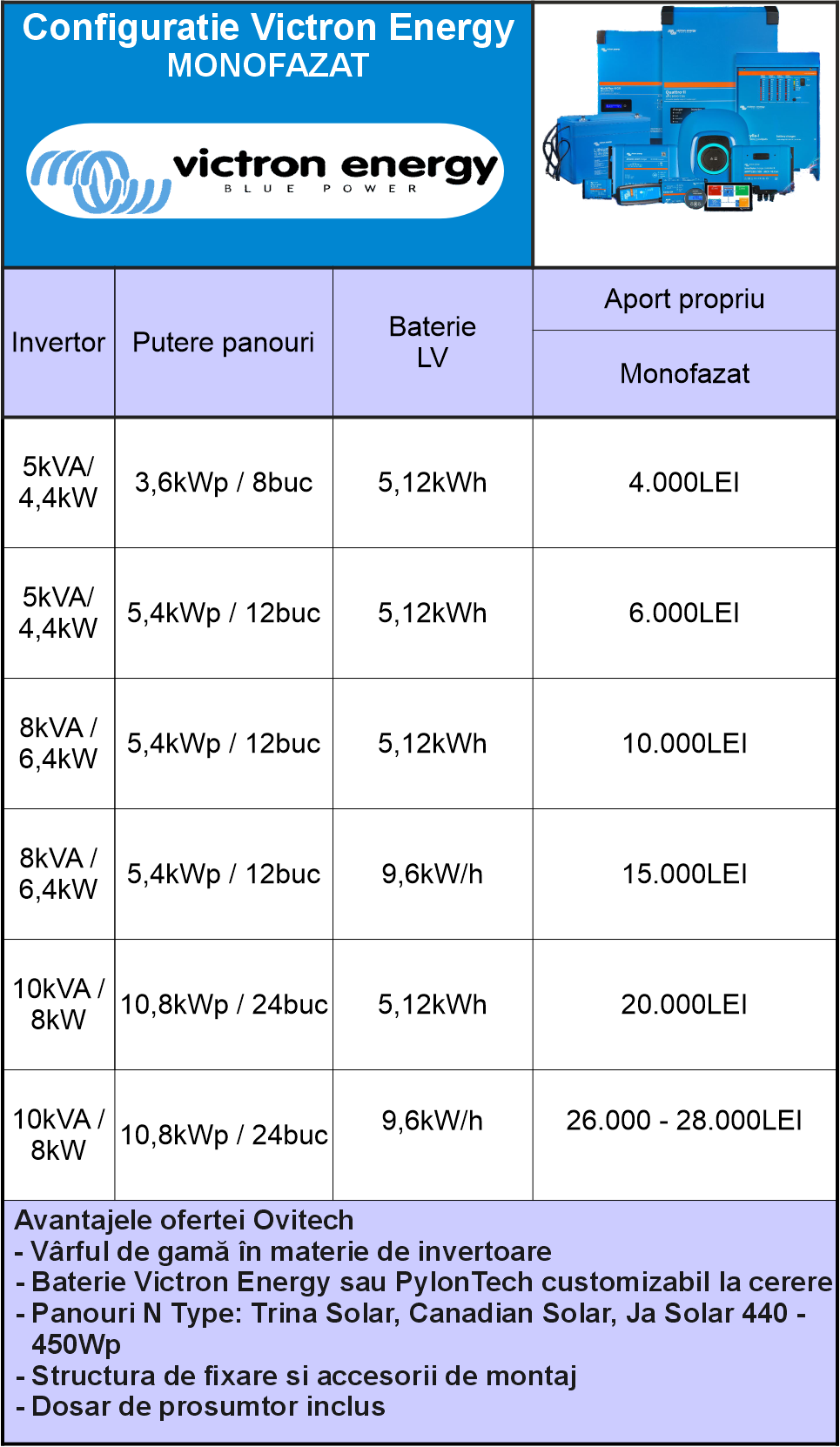 Pachet cu invertor VICTRON ENERGY 8kW/10kVA HIBRID / OFF-GRID și panouri Trina / Canadian Solar / Longi / Ja Solar